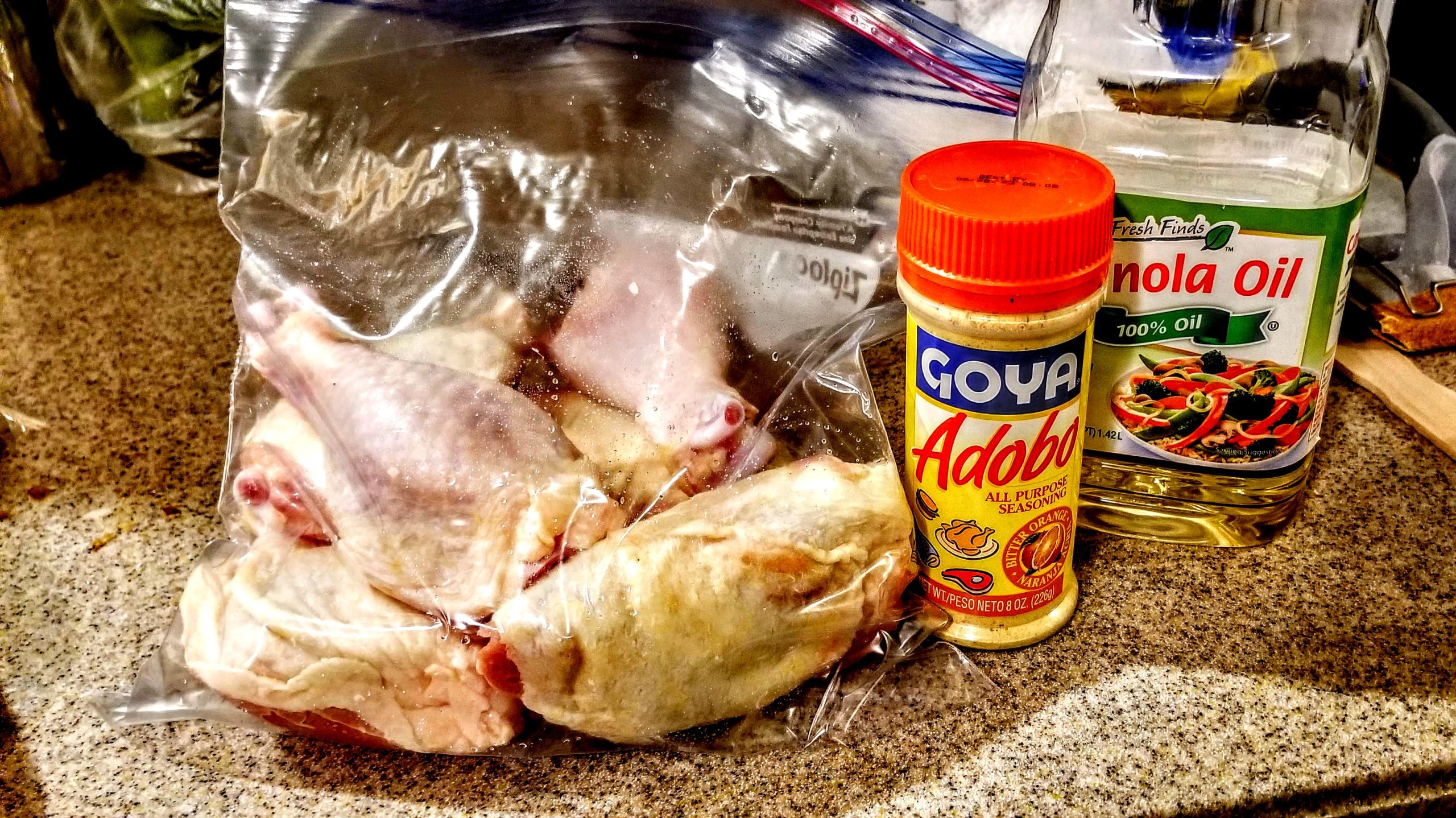 Close the bag then massage it like crazy to coat the chicken and get the Adobo all over